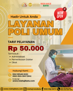 Menyambut HUT Kota Batu ke-24 dan Hari Kesehatan Nasional (HKN) ke-61, RSIA Haji Batu kembali turut serta dalam rangkaian kegiatan yang diselenggarakan oleh Dinas Kesehatan Kota Batu, yaitu “Mlaku Bareng Sedoyo Sehat” pada tanggal 16 November 2025 berlokasi di Alun-Alun Kota Batu. Pada kesempatan ini, RSIA Haji Batu membuka booth pemeriksaan kesehatan sederhana bersama dokter umum, termasuk pemeriksaan gula darah gratis untuk para peserta jalan sehat. Antusiasme masyarakat terlihat sangat tinggi, dan booth RSIA Haji Batu menjadi salah satu titik yang ramai dikunjungi. Kebahagiaan semakin lengkap ketika salah satu karyawan RSIA Haji Batu berhasil mendapatkan doorprize berupa kulkas dari undian kegiatan jalan sehat tersebut. Keterlibatan RSIA Haji Batu dalam acara ini menjadi bagian dari komitmen kami untuk terus mendukung kesehatan masyarakat dan berpartisipasi aktif dalam kegiatan positif di Kota Batu. Terima kasih kepada seluruh peserta dan panitia yang telah meramaikan kegiatan ini. Sampai jumpa di kegiatan berikutnyaRSIA Haji BatuJl. KH. Agus Salim No. 35, Kelurahan Sisir, Kecamatan Batu, Kota Batu, Jawa Timur (65314)Website: www.rsiahajibatu.comFacebook : RSIA Haji BatuInstagram : rsiahaji.kotabatuLayanan Pelanggan (WA): 0822-2524-5847