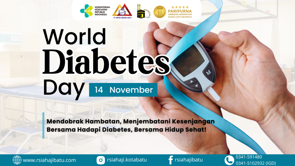 Hari ini, 14 November, diperingati sebagai Hari Diabetes Sedunia, momen penting bagi masyarakat dunia untuk meningkatkan kesadaran akan bahaya diabetes dan pentingnya pencegahan sejak dini. RSIA-Haji Batu turut mendukung peringatan ini dengan mengajak masyarakat untuk lebih peduli terhadap kesehatan, khususnya dalam mengendalikan kadar gula darah agar terhindar dari risiko diabetes.