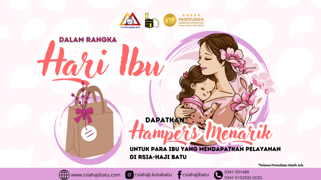 Dalam rangka memperingati Hari Ibu, RSIA Haji Batu mengundang para ibu untuk merayakan momen spesial ini bersama kami! Pada tanggal 22 Desember 2024, RSIA Haji Batu akan membagikan hampers menarik kepada para ibu yang mendapatkan pelayanan kesehatan.
