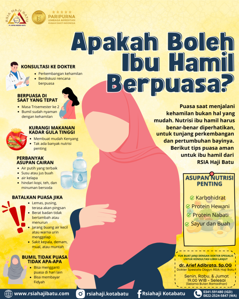Secara medis, kebutuhan gizi ibu hamil berbeda dengan orang pada umumnya, karena ia harus memastikan asupan nutrisi yang cukup untuk dirinya sendiri dan perkembangan janin. Puasa yang dijalani tanpa perencanaan yang baik dapat berisiko menyebabkan dehidrasi, kekurangan energi, atau gangguan kesehatan lainnya. Namun, dengan pola makan yang tepat saat sahur dan berbuka, serta memantau kondisi tubuh secara berkala, sebagian ibu hamil tetap dapat menjalani puasa dengan aman. Oleh karena itu, penting bagi ibu hamil untuk berkonsultasi dengan dokter sebelum memutuskan untuk berpuasa.