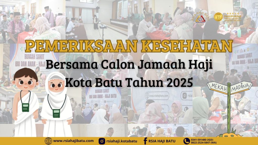 Menjelang keberangkatan menuju Tanah Suci, sebanyak kurang lebih150 calon jamaah haji dari Kota Batu mengikuti kegiatan pemeriksaan kesehatan yang diselenggarakan oleh RSIA Haji Batu pada Selasa, 15 April 2025. Kegiatan ini menjadi bagian dari upaya persiapan fisik dan mental agar para jamaah dapat menunaikan ibadah dengan kondisi tubuh yang prima.